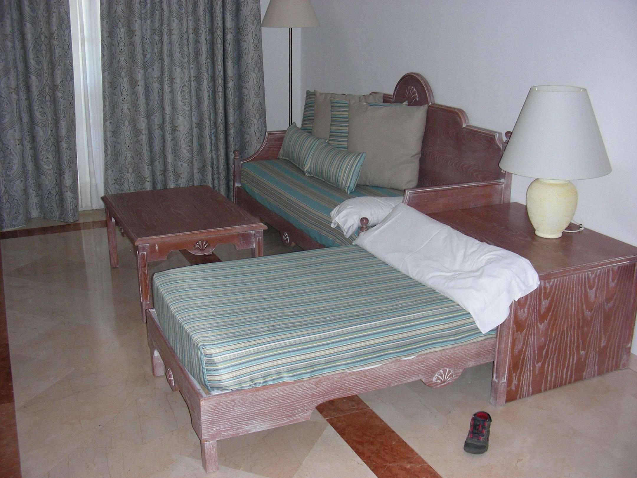 WohnzimmerVom EIngang aus sieht man auf das Schlafsofa, auf dem zwei Erwachsene wirklich schlafen können.