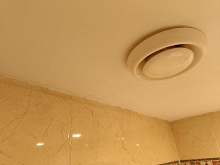 ZimmerAbzug im Bad. Feuerzeug dran halten es wird nichts abgesaugt und deswegen ist die ganze Decke auch feucht