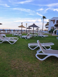 Außenanlage des Hotels. Rechts die Bungalows des Hotels.