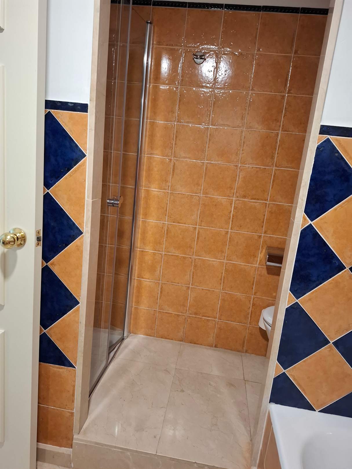 Eingang Duschbereich (links) / Toilette (rechts)