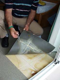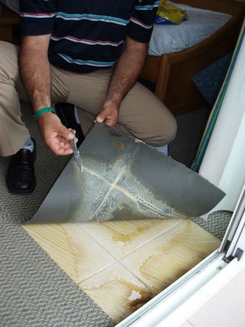 Nach einer Woche Stinkerei haben wir den Schimmel am Abreisetag gefunden. Vermutlich nach einem Wasserschaden wurde der Teppich einfach auf die noch sehr feuchten Fliesen geklebt! :-(
