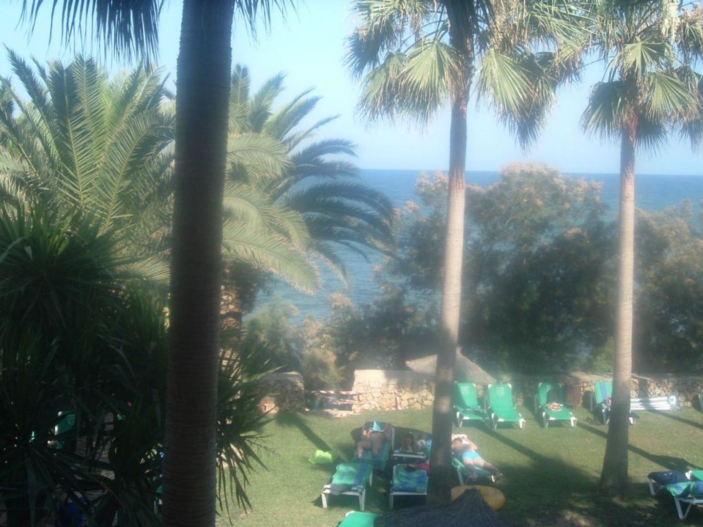 Schöne Liegewiese unter Palmen