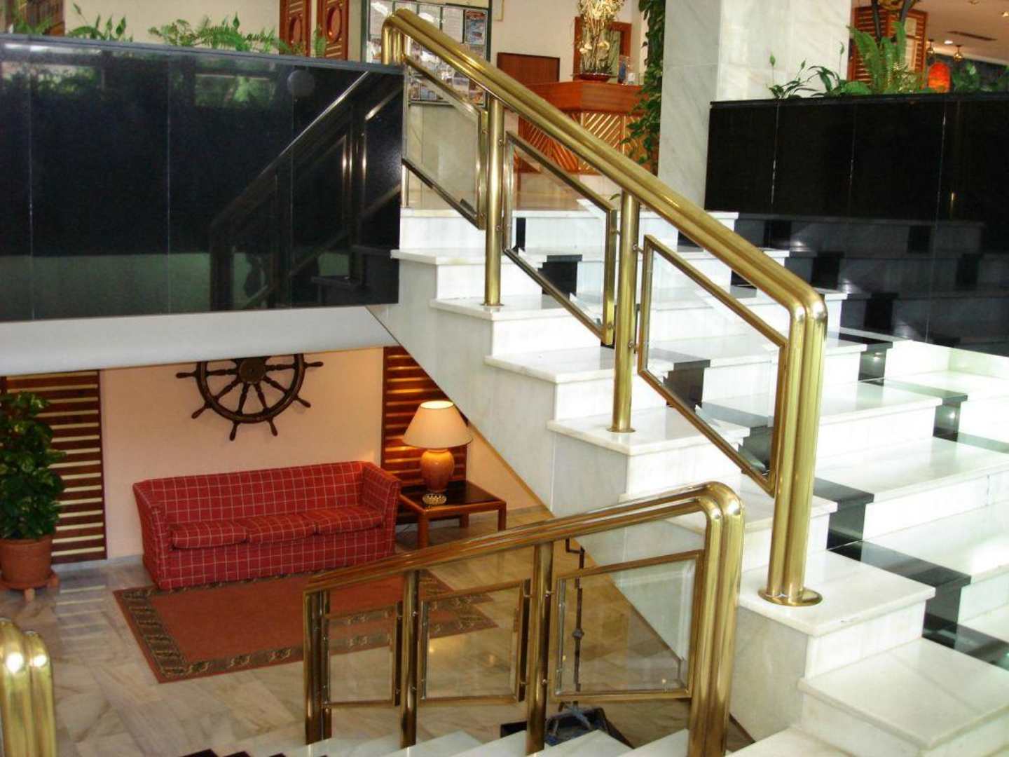 Treppe zum Speisesaal (rechts) und Saune (links)