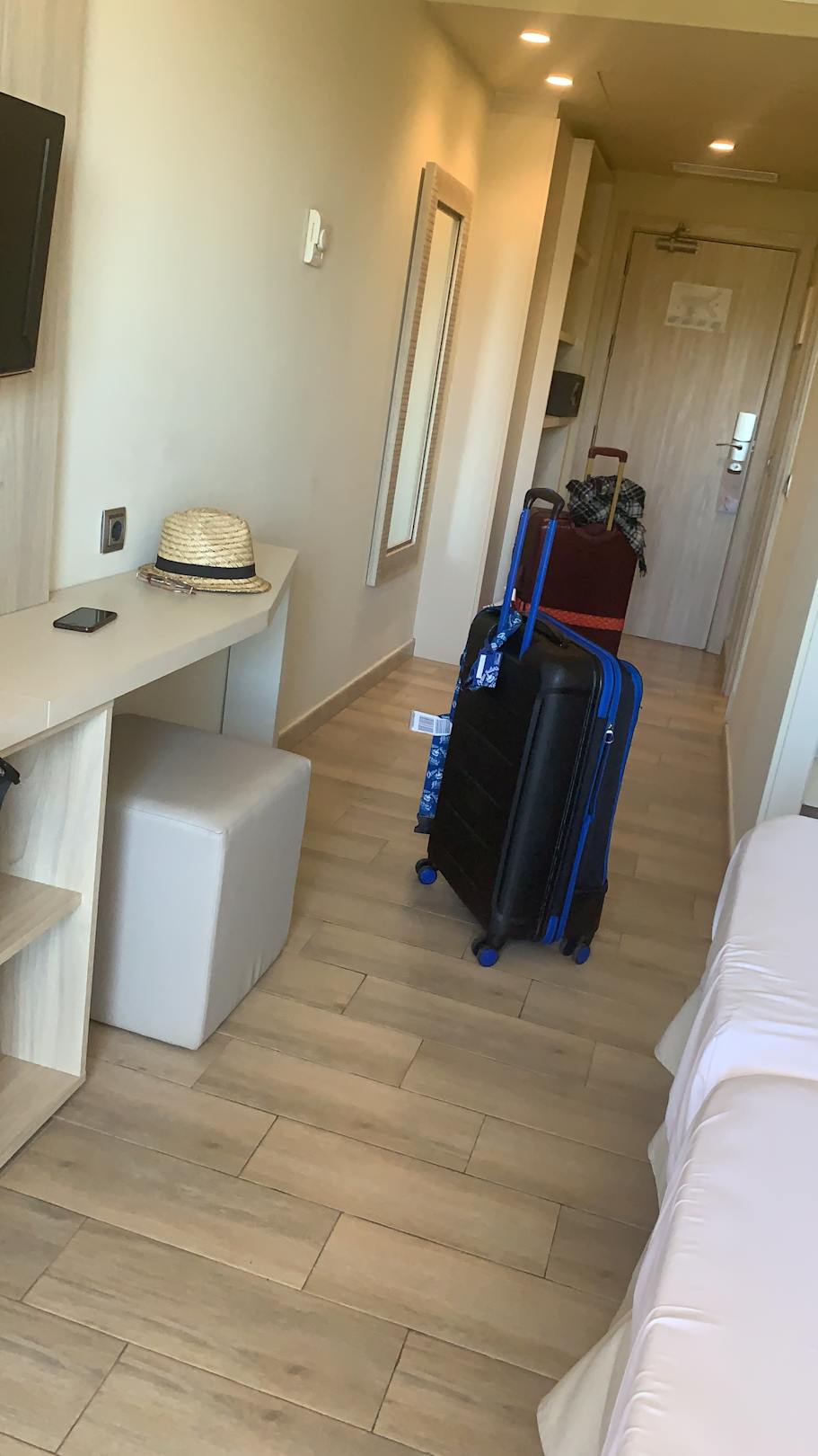 TV+Ablage & Stuhl, sowie großer Spiegel und Safe (gegen Aufpreis).