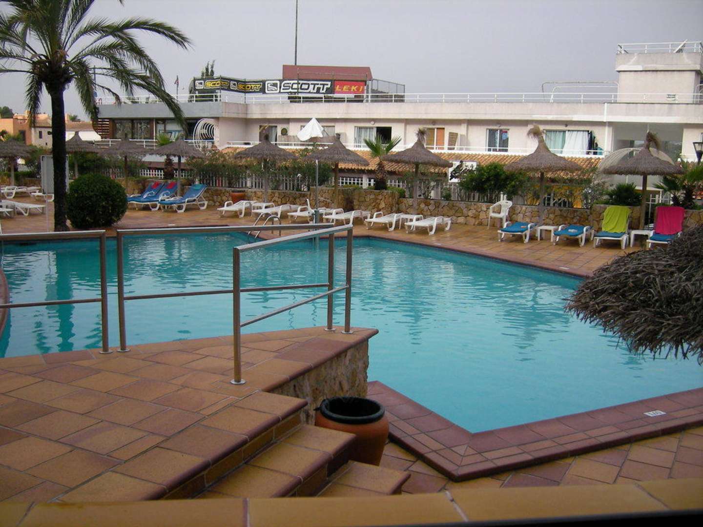 Blick vom Gang zu unserem Zimmer auf den Pool
