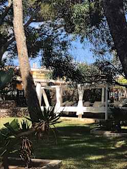 Pool Garten mit vielen Himmelbetten