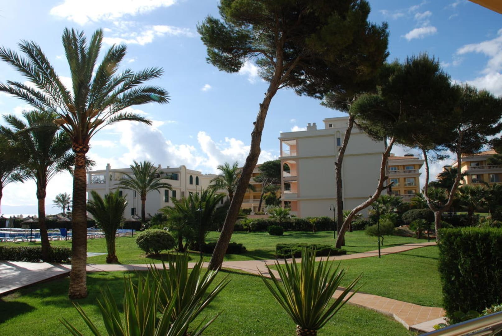 Blick auf den Garten Richtung Pool aus Appartement 1008 - Grupotel Natura Playa