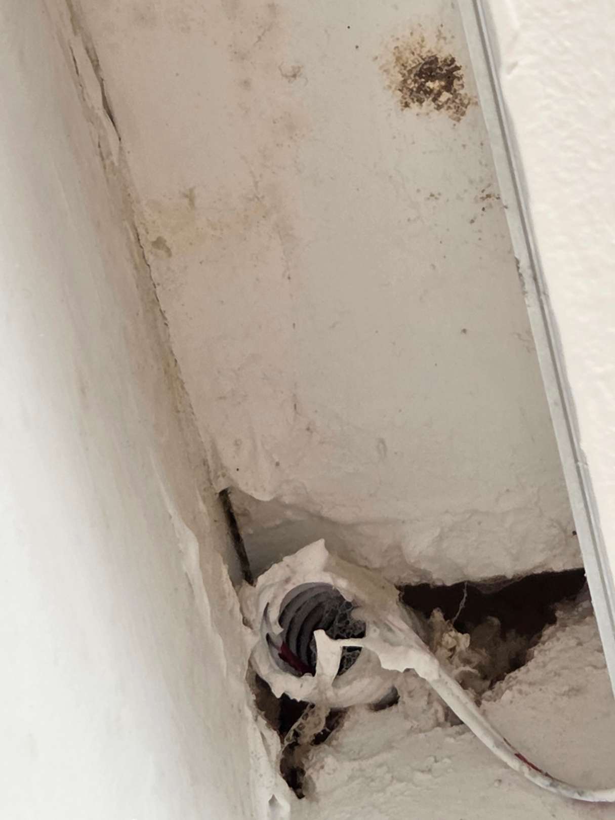 Schimmel und offene Rohre im Zimmer aus denen Insekten krabbeln