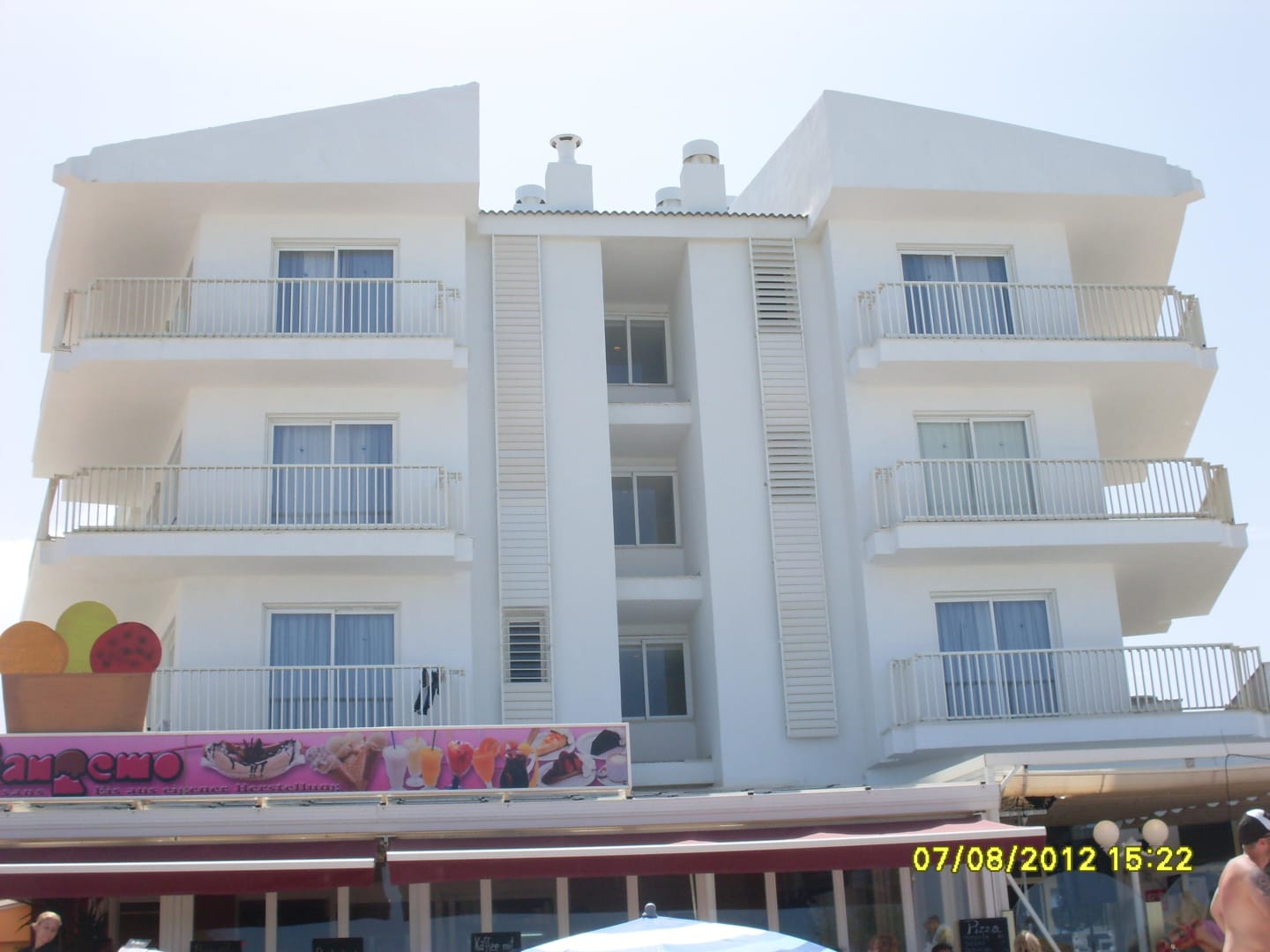 Blick vom Strand auf das Hotel