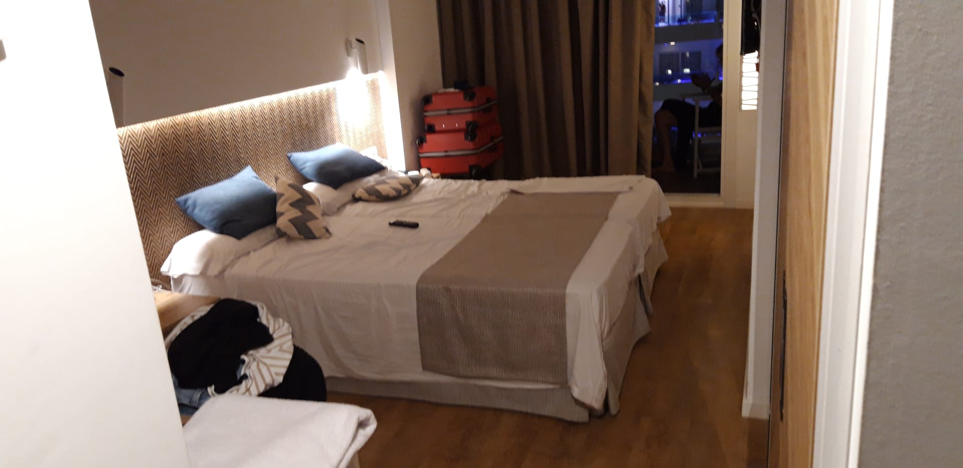 Kleinstes Doppelzimmer ever!!!! Kaum Platz zum Durchgehen zwischen Bett und Wand.