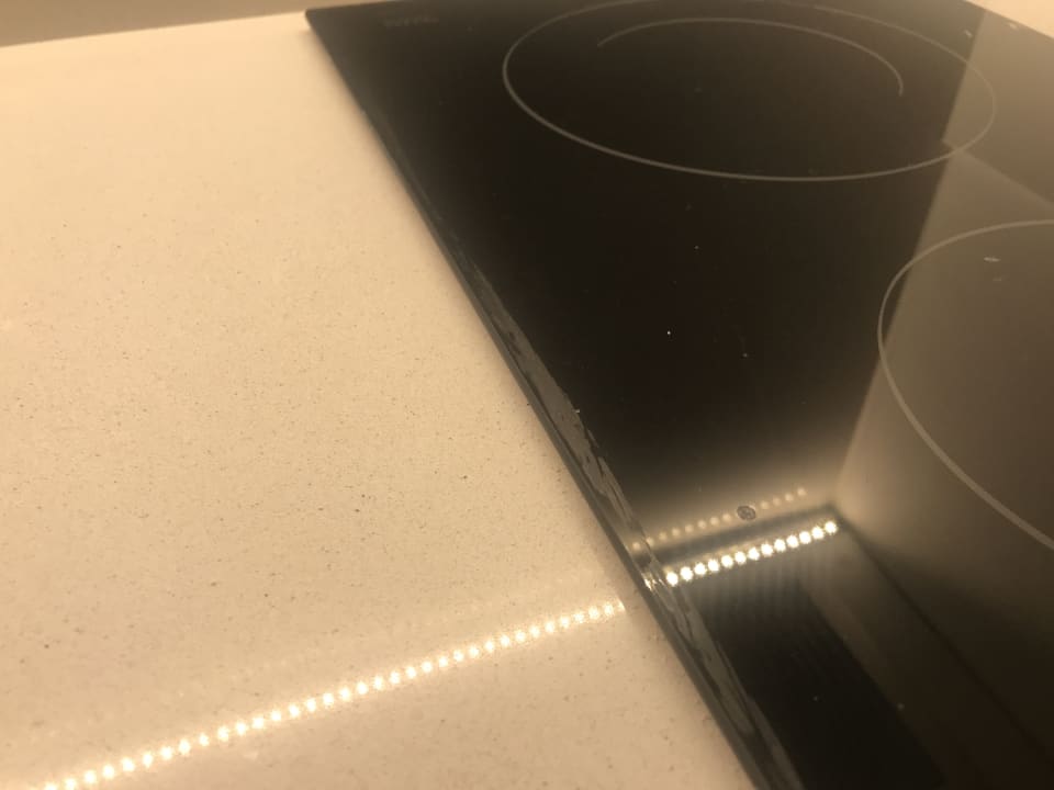 Neben den Silikon Resten die noch oben drauf kleben.