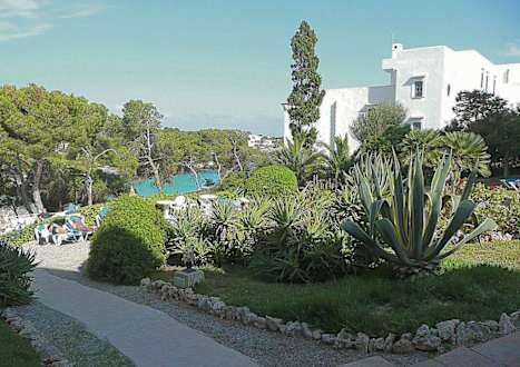 Bucht, Strand und Gartenanlage des Hotels Rocador