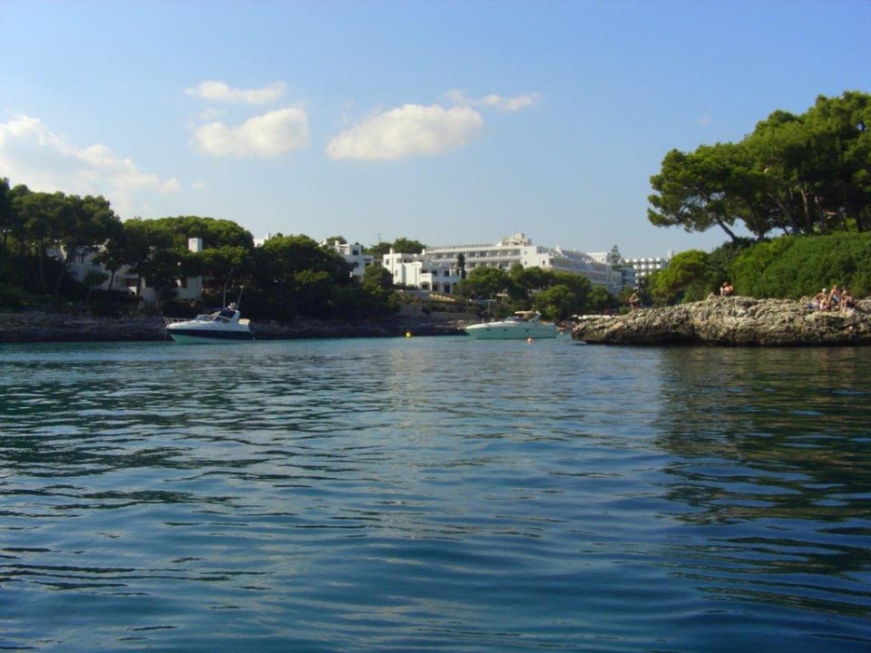 Blick auf Cala Gran und Hotel vom Wasser her