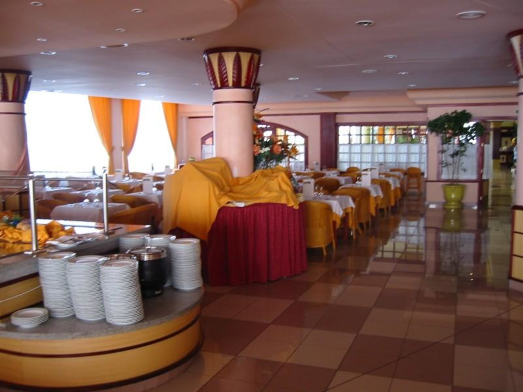 Sitzplätze im Speisesaal Richtung Rezeption