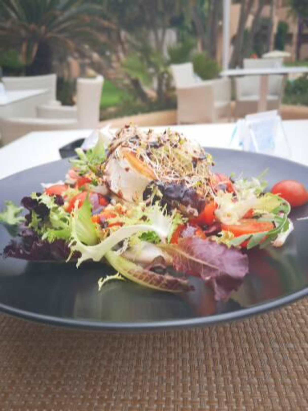 Ein hervorragender Salat am Pool. Gebratener Ziegenkäse, nur zum Empfehlen.