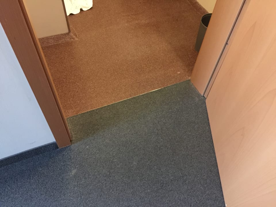 Flecken auf dem Teppichboden und kein schöner Boden im Bad.