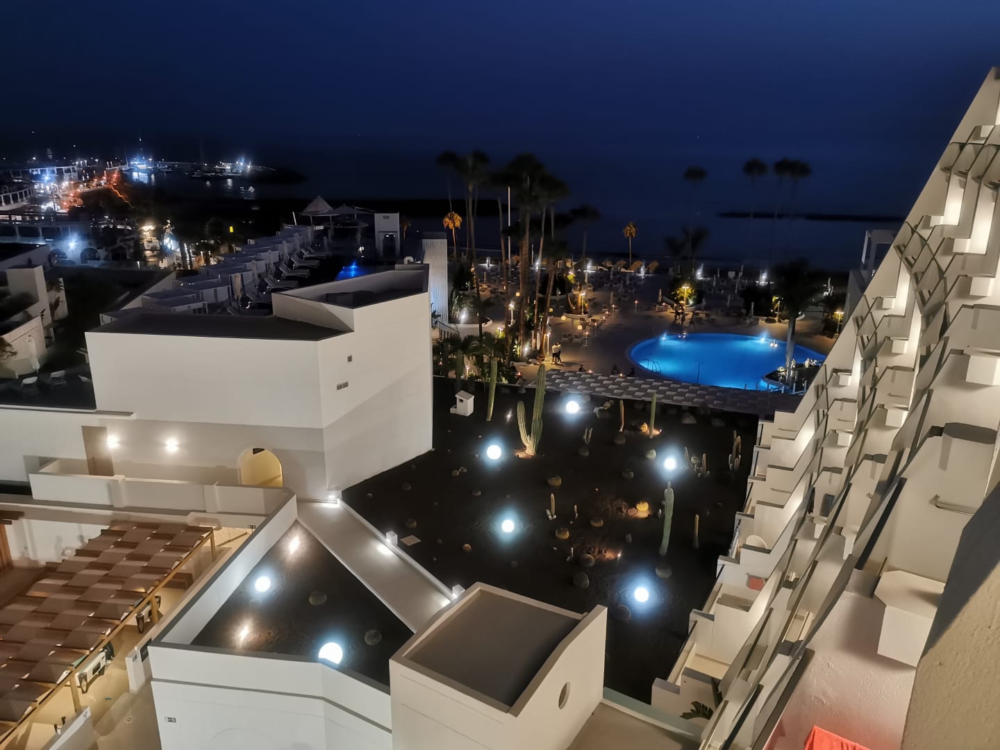 Blick aus dem 10ten Stock (ganz oben) Doppelzimmer mit seitlichem Meerblick bei Nacht
