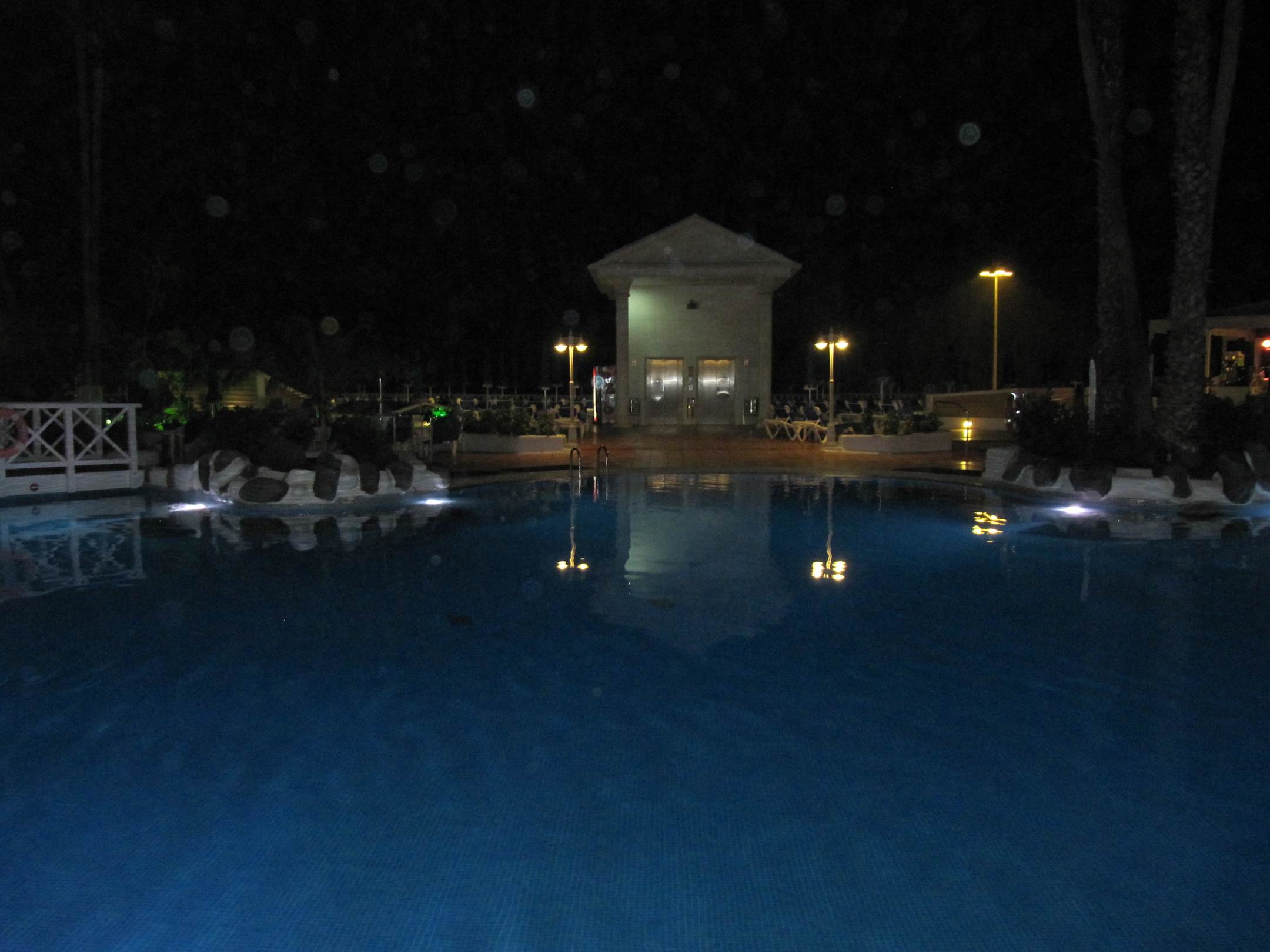 Poolanlage am Abend