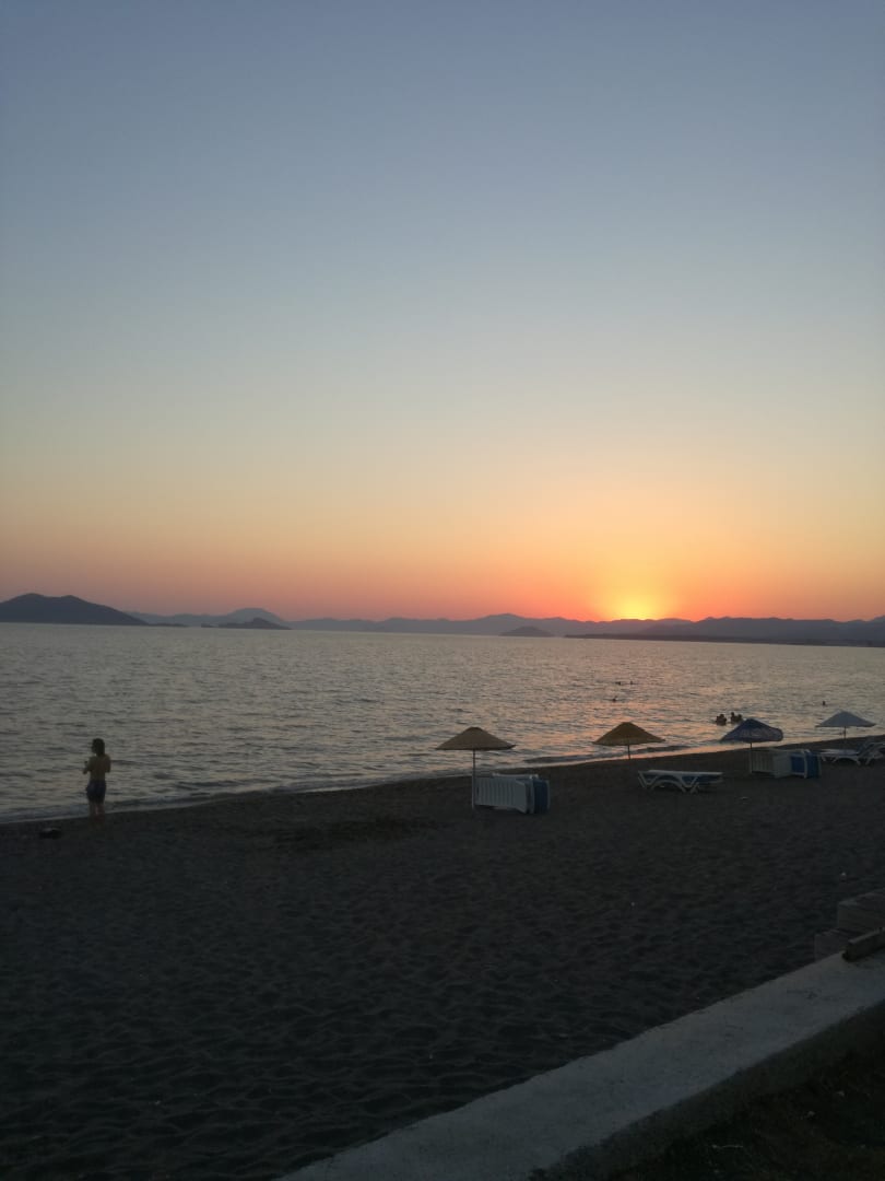 Direkte Aussicht auf den Strand vom Hotelrestaurant.