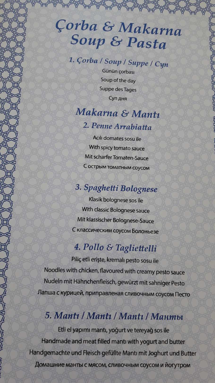 Karte Snackrestaurant