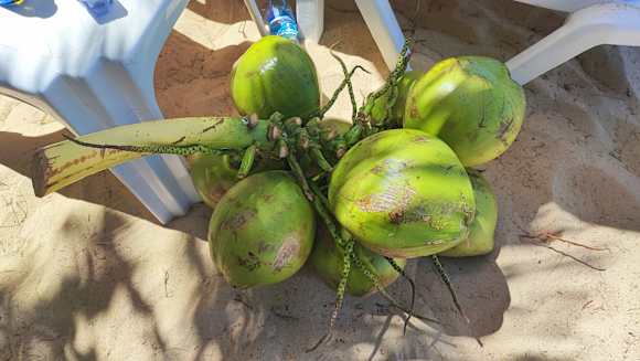 Mein Vorrat, kann man selbst kaufen, ist dann entsprechend billiger. Eine Kokosnuss trinkfertig geöffnet und gegühlt kostet ca. 50 baht beim Street Food und 80 bis 100 beim Restaurant. Also immer Street Food kaufen oder selbst dann ca. 30baht.