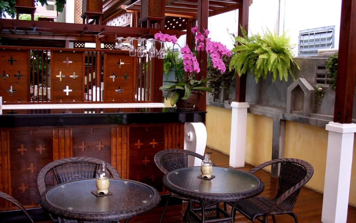 Blick von der Straße auf die Bar für 2