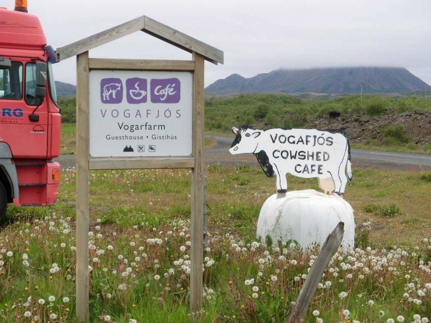 Bei der Anreise unbedingt auf dieses Schild achten ! Die Einfahrt zum Hof ist etwa 3 km nördlich der Einfahrt nach Dimmuborgir und etwa 2 km südlich Reykjahlíð.