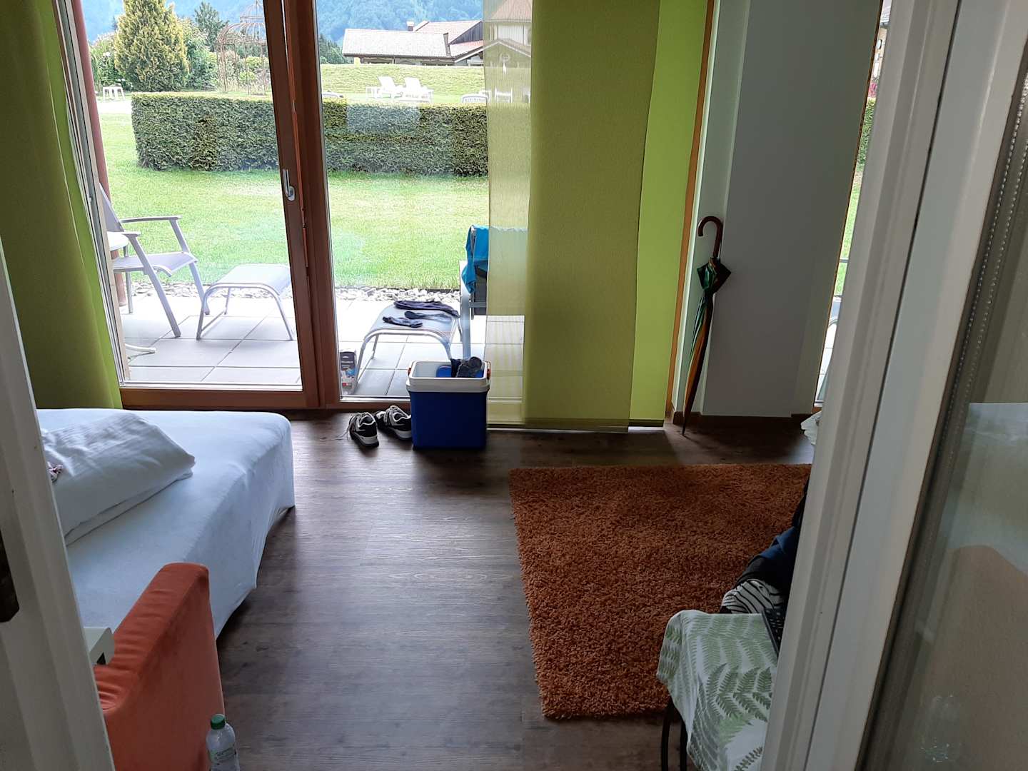 ZimmerBlick vom Elternzimmer ins Kinderzimmer, links ausgewogenes Sofa und rechts noch grosse Sofaecke bei Zimmer 118!