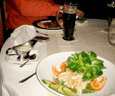 Z. Bsp. zur Auswahl: Herzhaftes Köhlergoulesch mit Bohnen und Spätzle oder Großer Salatteller mit Hähnchenbruststreifen, Das Essen war sehr gut!
