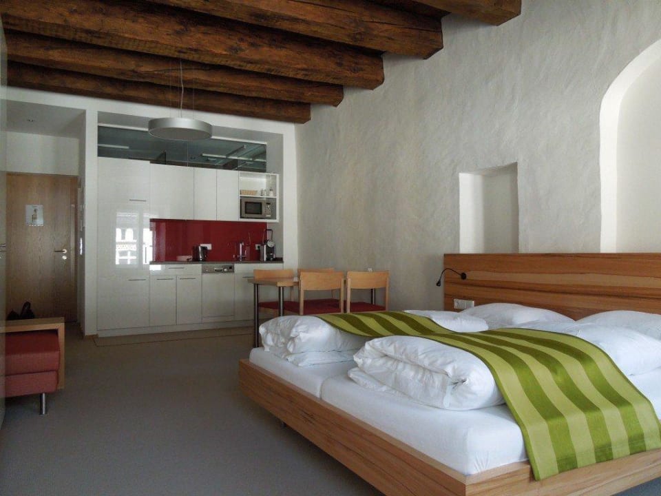 Voll ausgestattete Küchenzeile inkl. Nespresse-Maschine (Achtung: nicht die "normalen" Nespresso-Kapseln, sondern die Tabs für die Business-Nespressomaschinen, erhältlich in der Bäckerei im Haus)