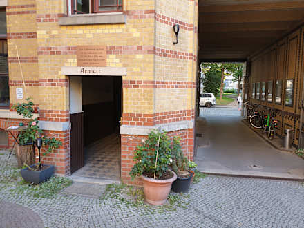 LobbyBlick vom Innenhof auf den Duchgang und den Eingang zum Treppenhaus im Amadeus-Gebäude (zu den Doppelzimmern Economy)