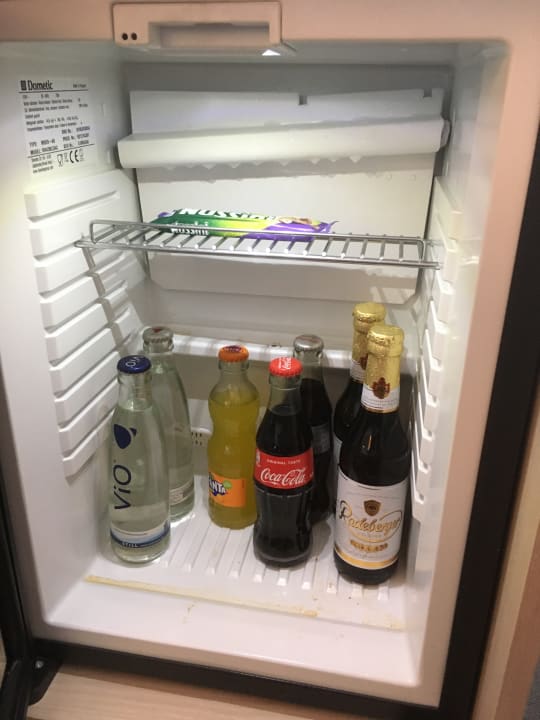 Minibar mit fehlendem Saft und reichlich Schmutz