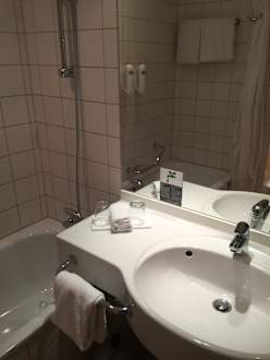 ZimmerBadezimmer mit Badewanne und Regendusche,