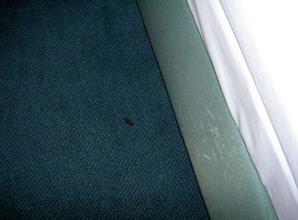 Brandflecken auch auf dem BodenHier sieht man auch Brandflecken direkt vor dem Bett auf dem Boden. Inkl. Flecken...