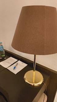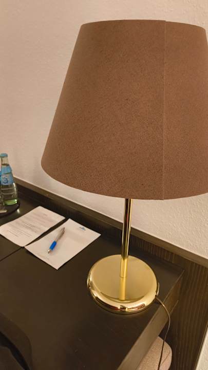 Schreibtisch mit netter Lampe.