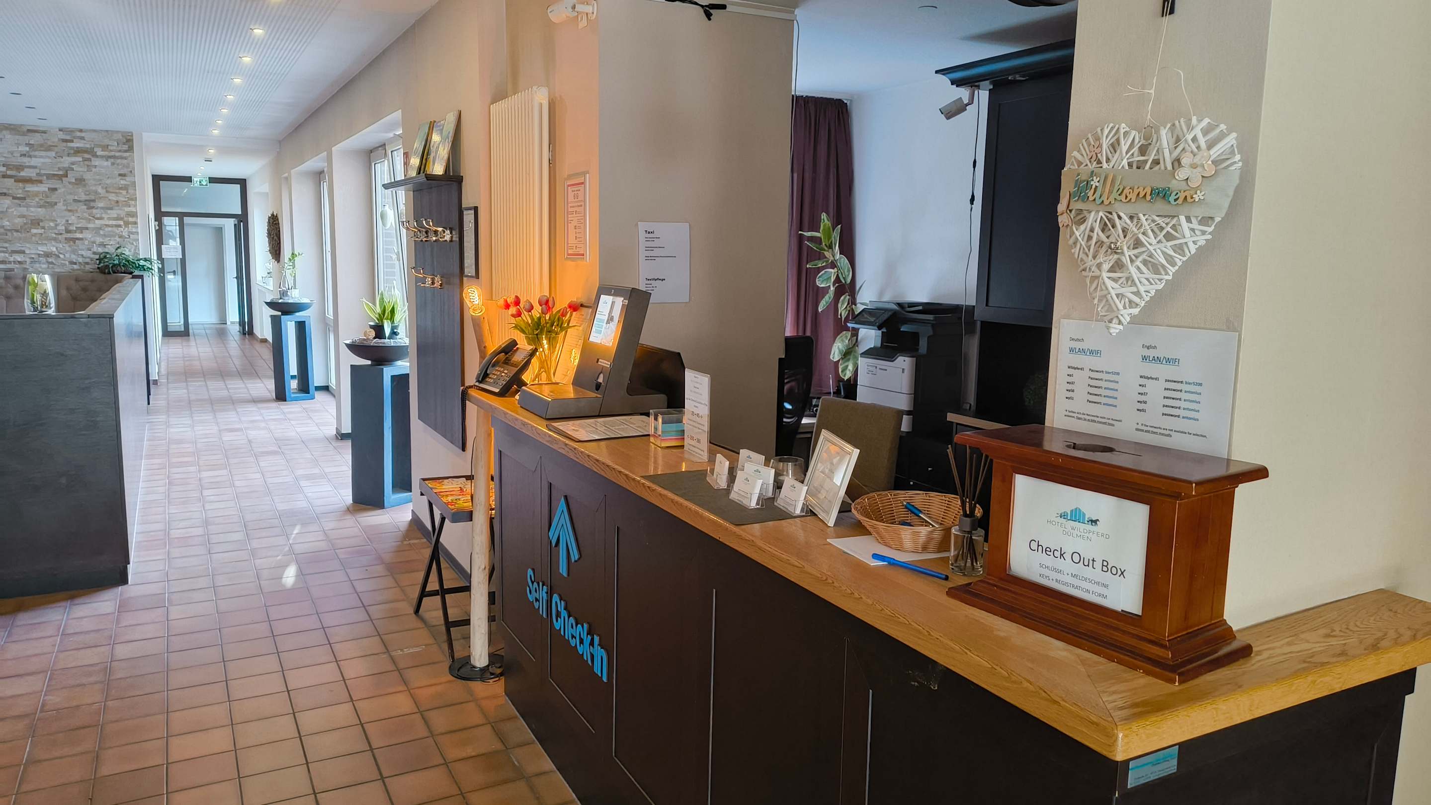 Leider eine unbesetzte Rezeption. Nachts und auch am nächsten Morgen.