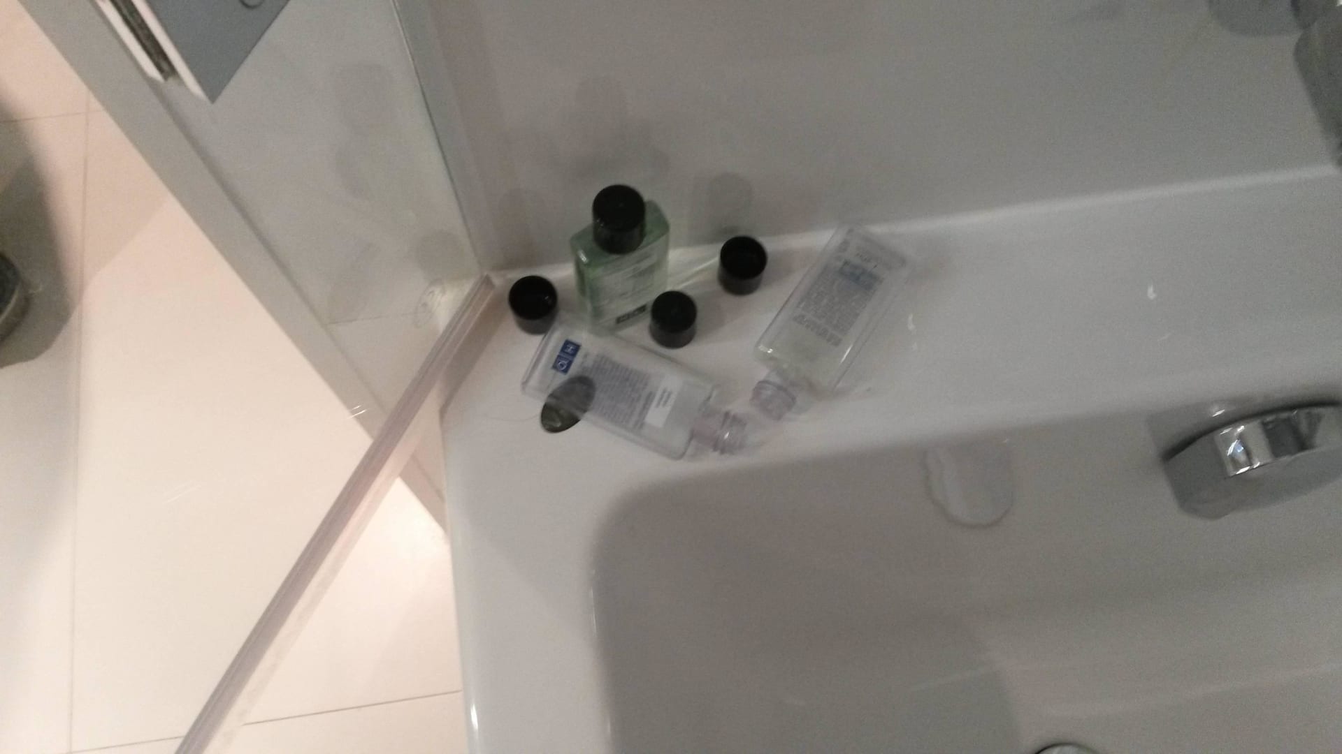 BadewanneDie kleinen Flaschen mit dem Duschgel wurden bei der Zimmerreinigung mehrmals übersehen und die Badewanne bzw. Wand sah auch nie einen Lappen