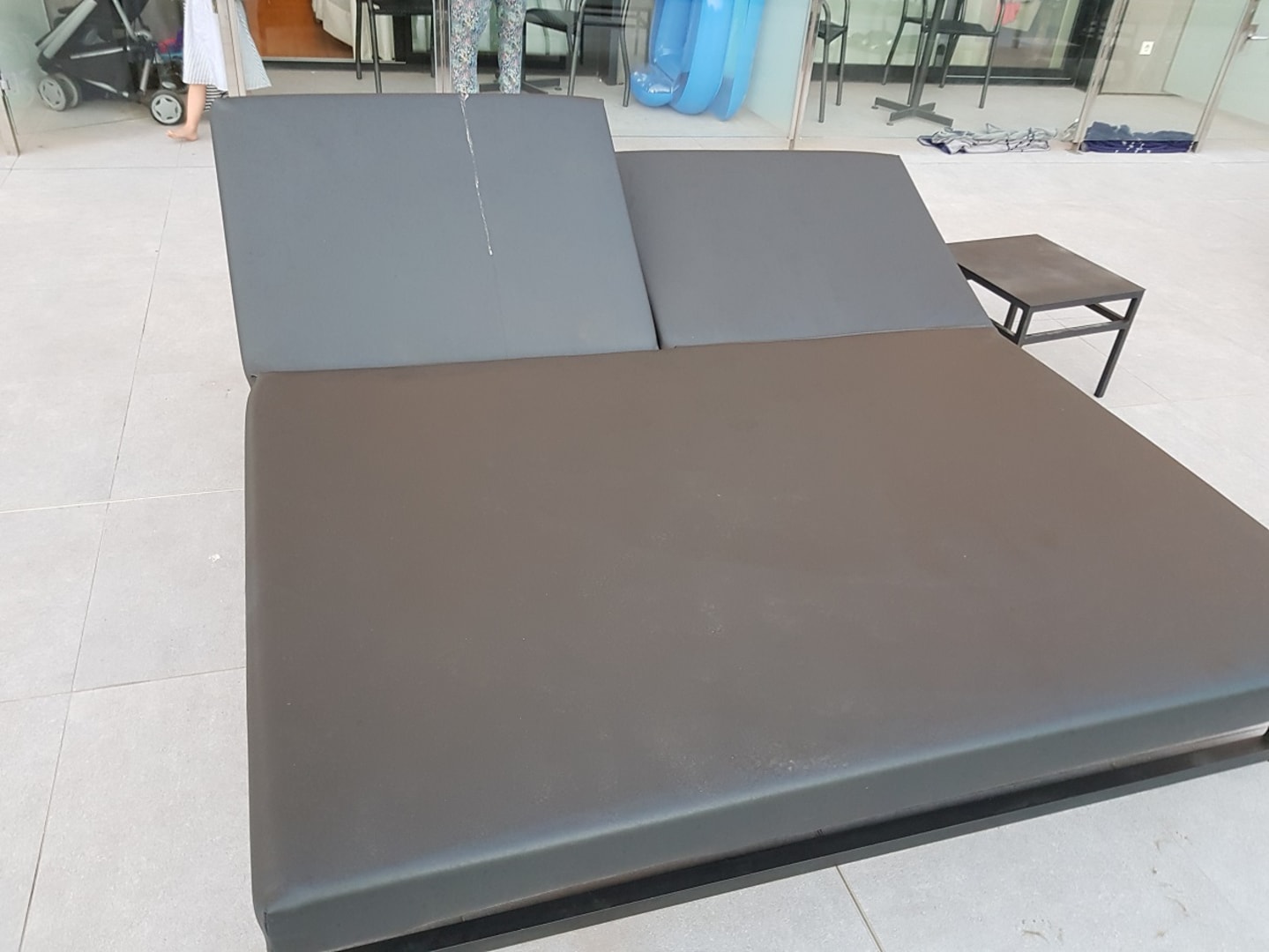 Vogelscheiße auf den Liegen die eine Woche lang nicht gereinigt wurden
