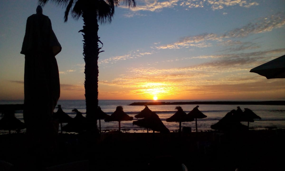 Strand befindet sich 10 Minuten links vom Hotel immer an der Strandpromenade entlang.Dort befindet sich auch ein tolles Restaurant mit super Blick auf die Sonne,Essen auch sehr,sehr lecker.