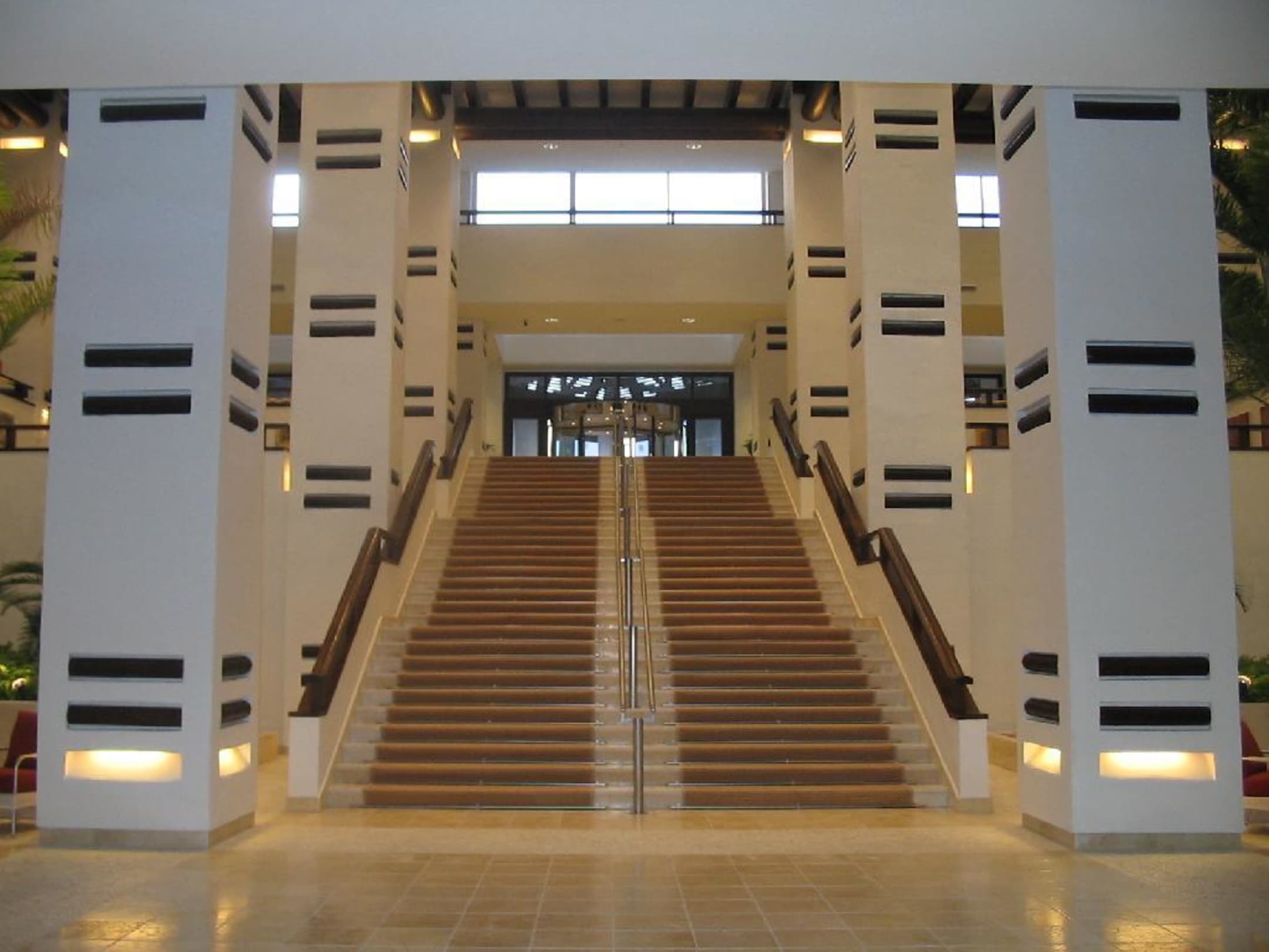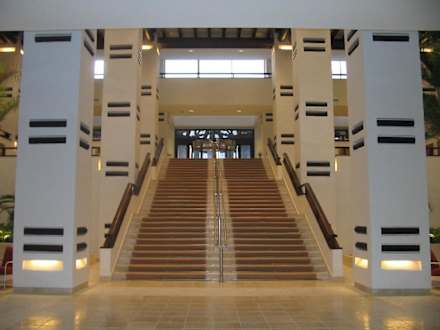 HotelhalleDie " grosse Treppe" von Pooleingang aus gesehen hinauf zum Vordereingang des Estepona Palace.