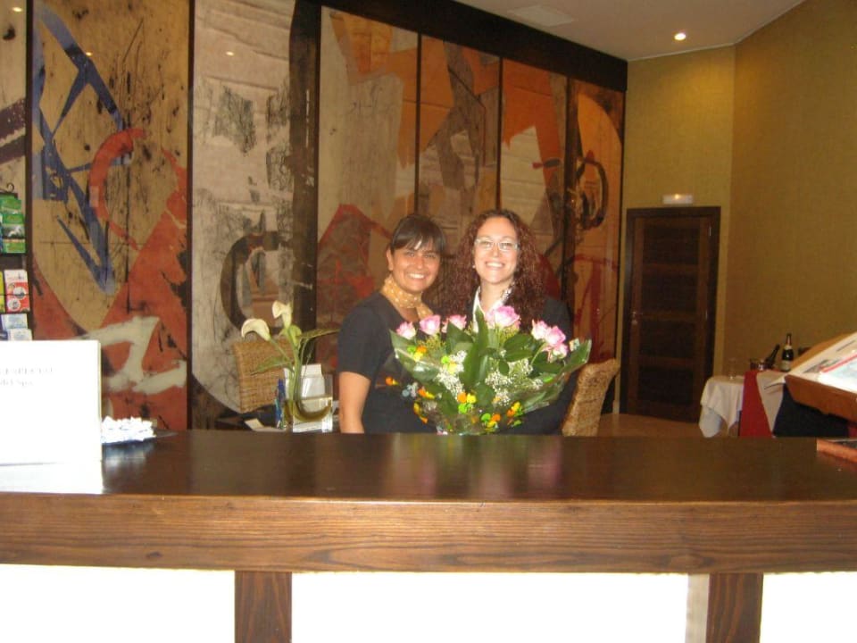 Links Angeal, die für alles eine Lösung hatte, rechts eine Mitarbeiterin des Hotels
