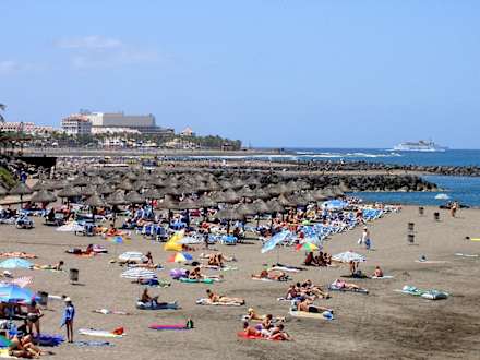 Strand vor dem Hotel H10 Gran TinerfeDieses Bild zeigt die Strandansicht vor dem Hotel H10 Gran Tinerfe in richtung Arona gebiet und Los Christianos.