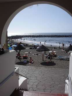 Blick vom Hotelausgang zum Strand
