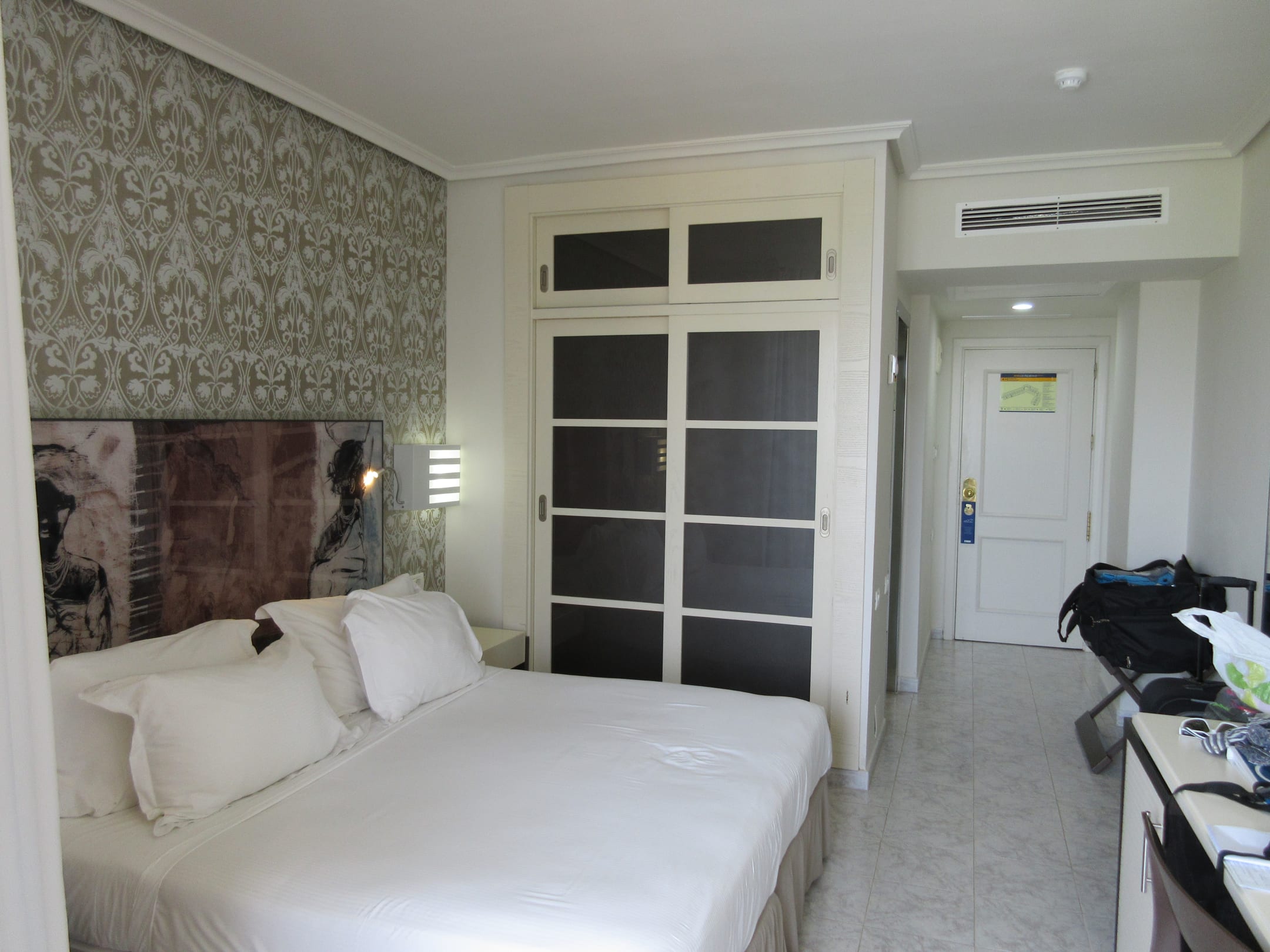 Zimmer im renovierte Teil des Hotels Bett und Wandschrank