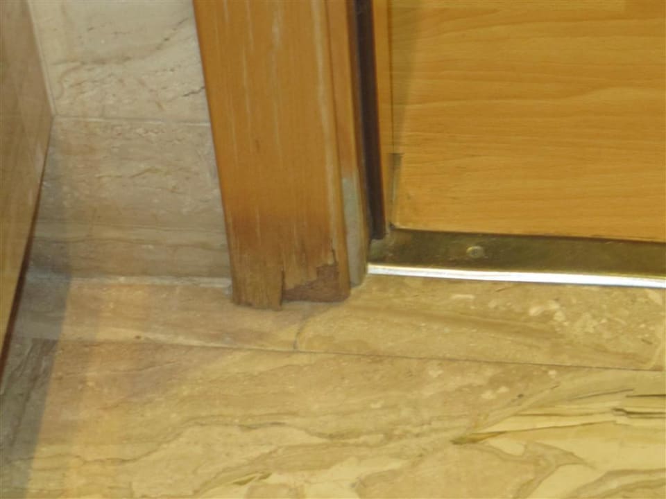 Gebrauchsspuren am Türrahmen - dürften vom Wasser der Dusche kommen