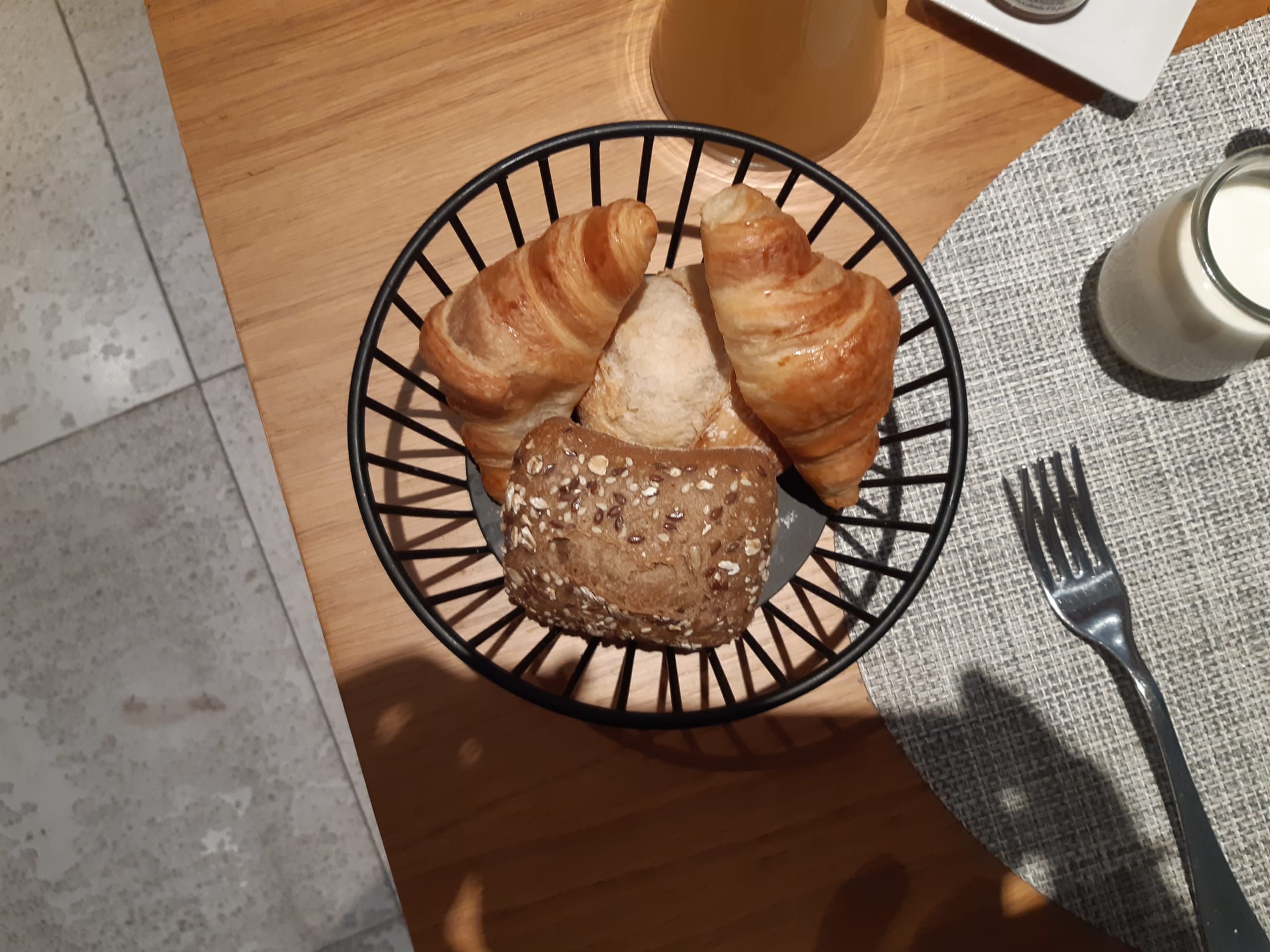 Zugeteilte Brötchen, sonst gibt es nur vorgeschnittenes Brot