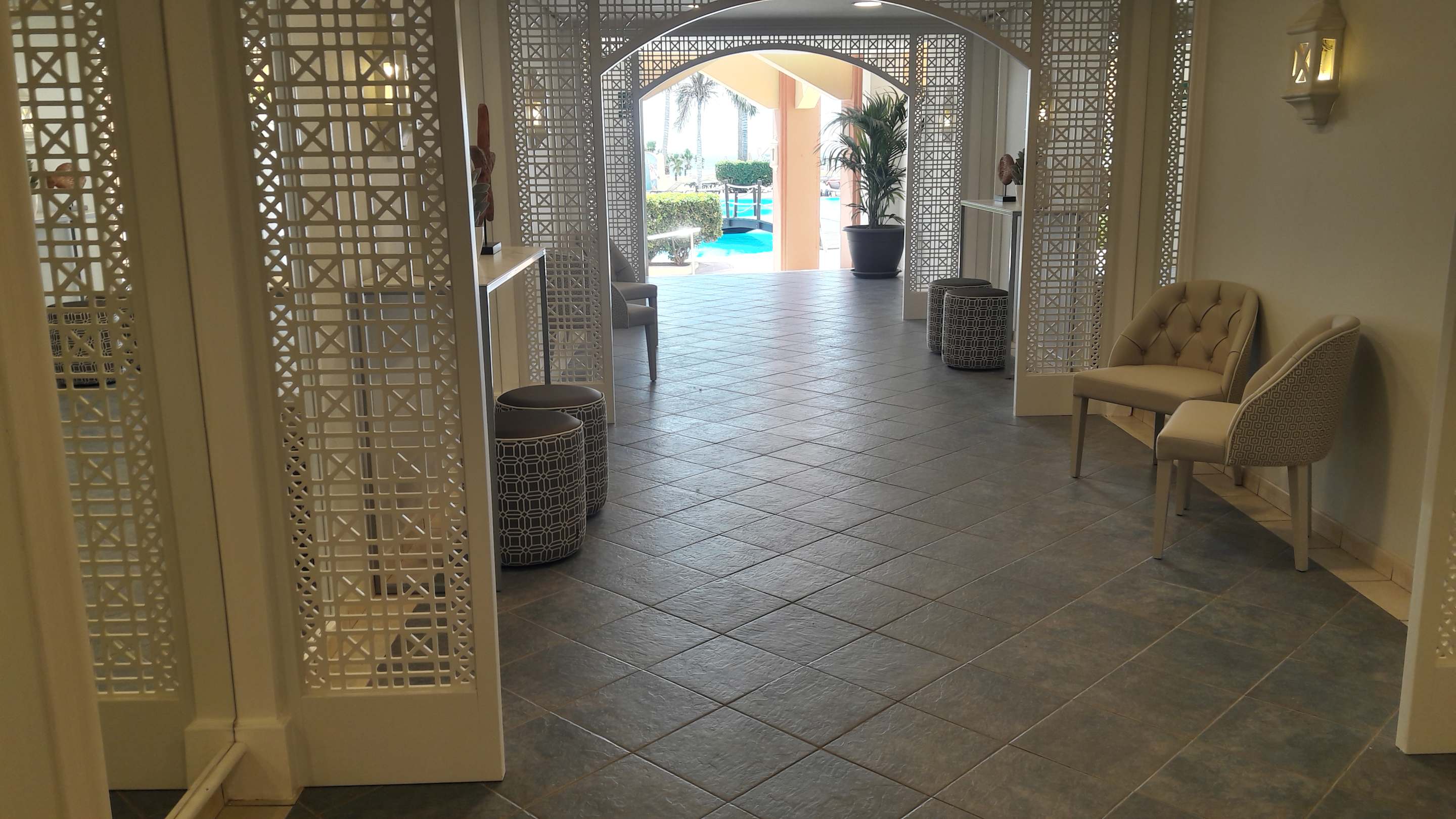 Durchgang zu Pool und den Bungalows