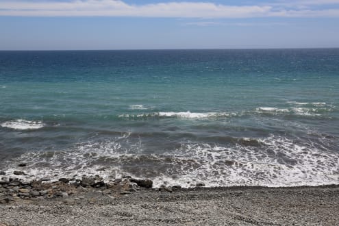 Sehr kieseliger Übergang ins Meer.