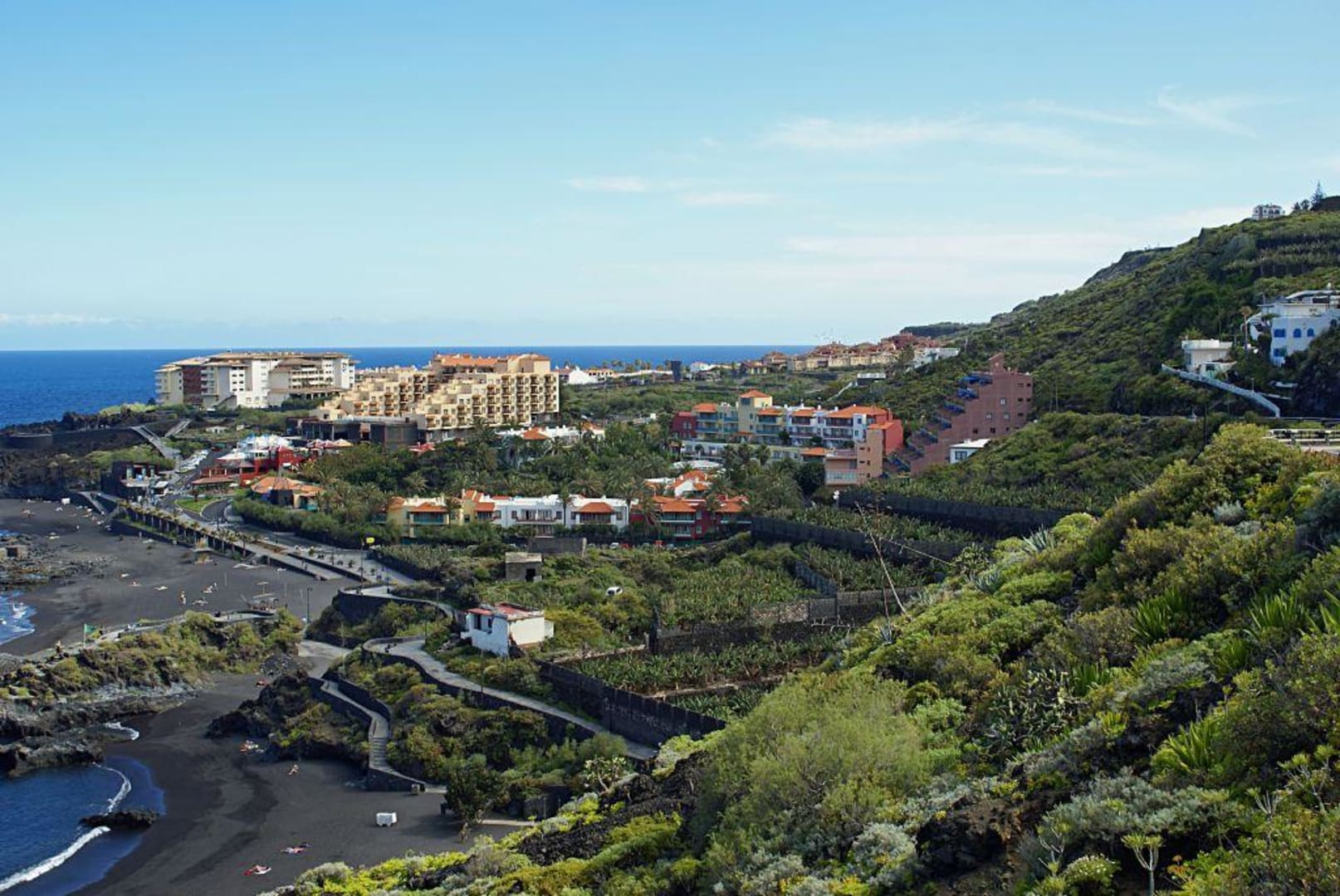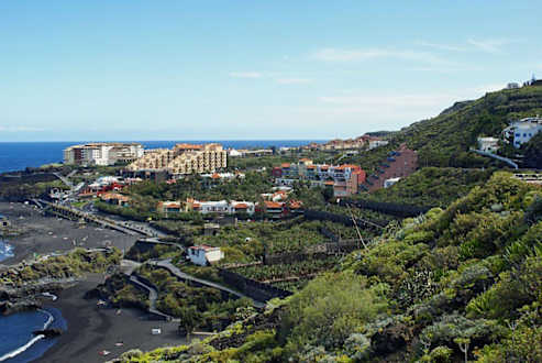 H10 Taburiente PlayaPlaya Los Cancajos und Hotel H10 Taburiente Playa links in Hintergrund zu sehen.