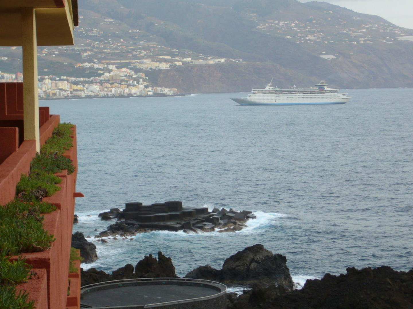 Einfahrendes Kreuzfahrschiff in den Hafen